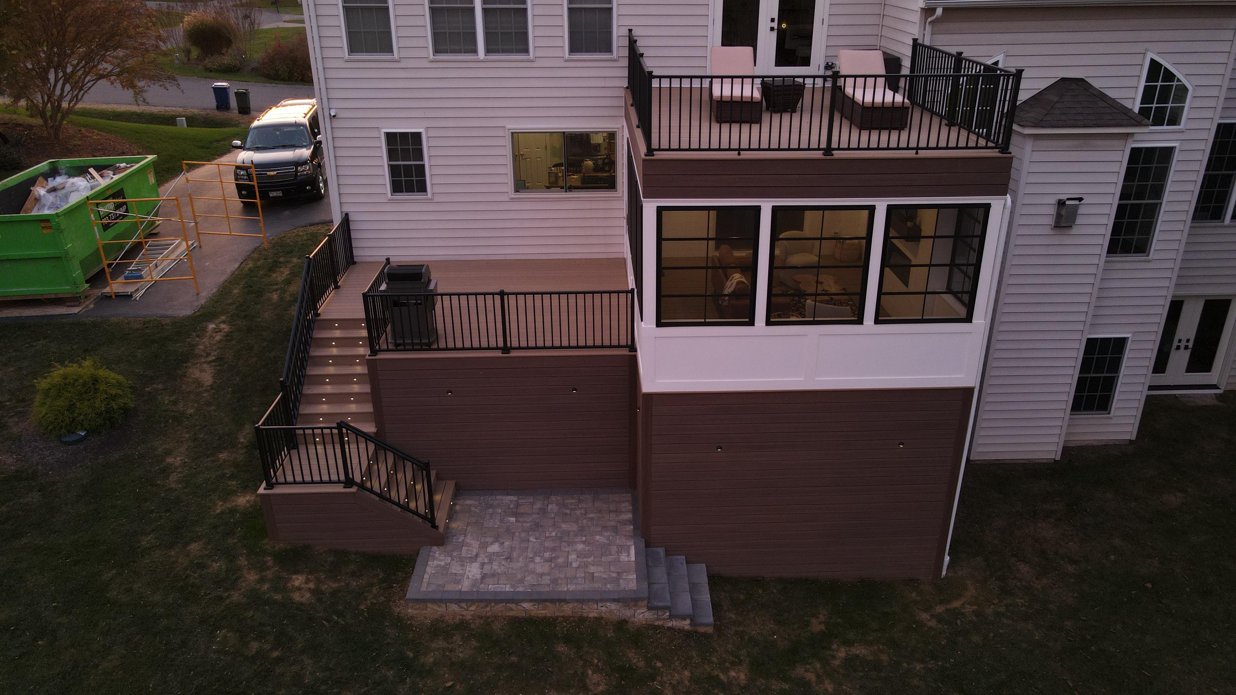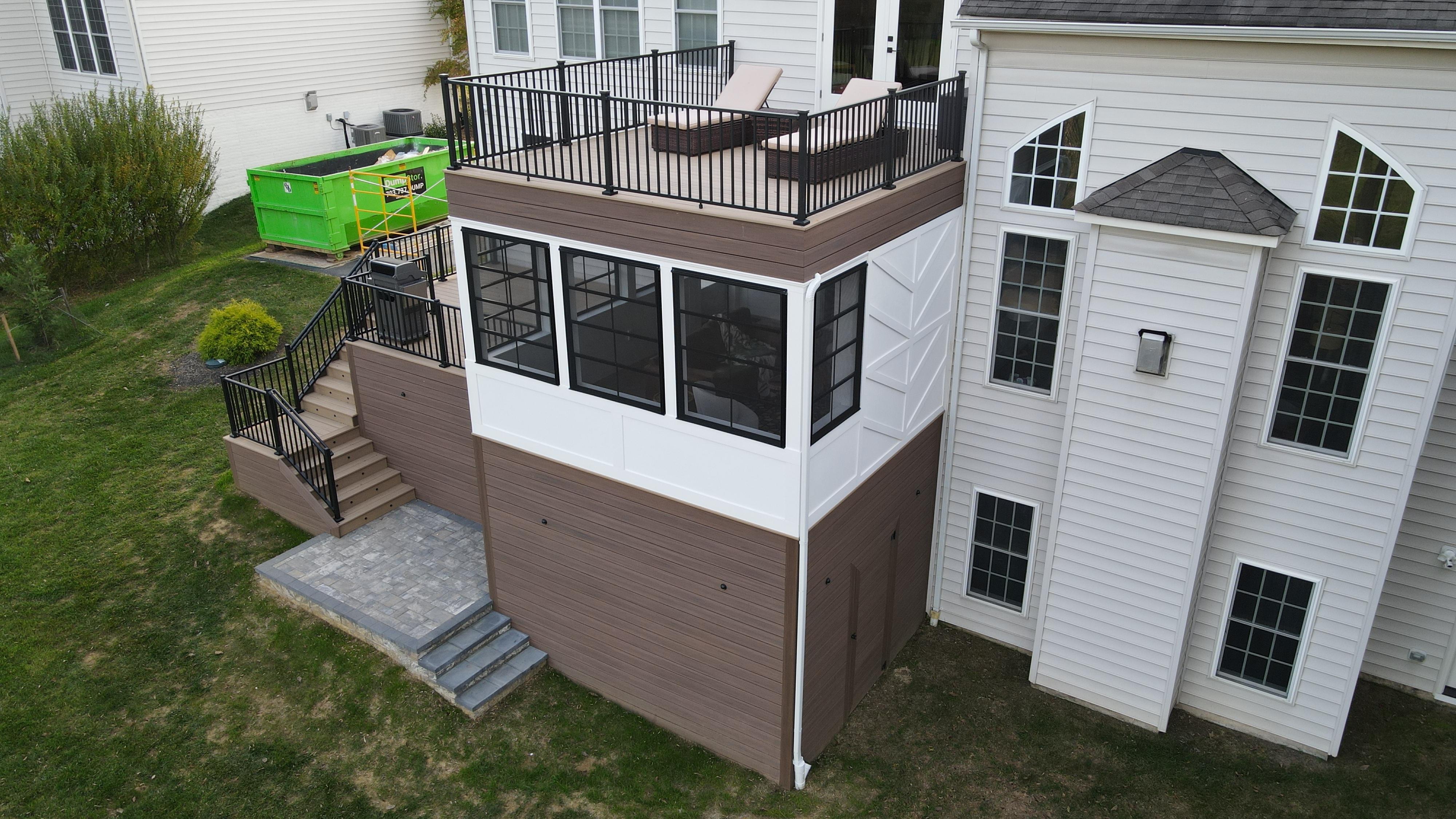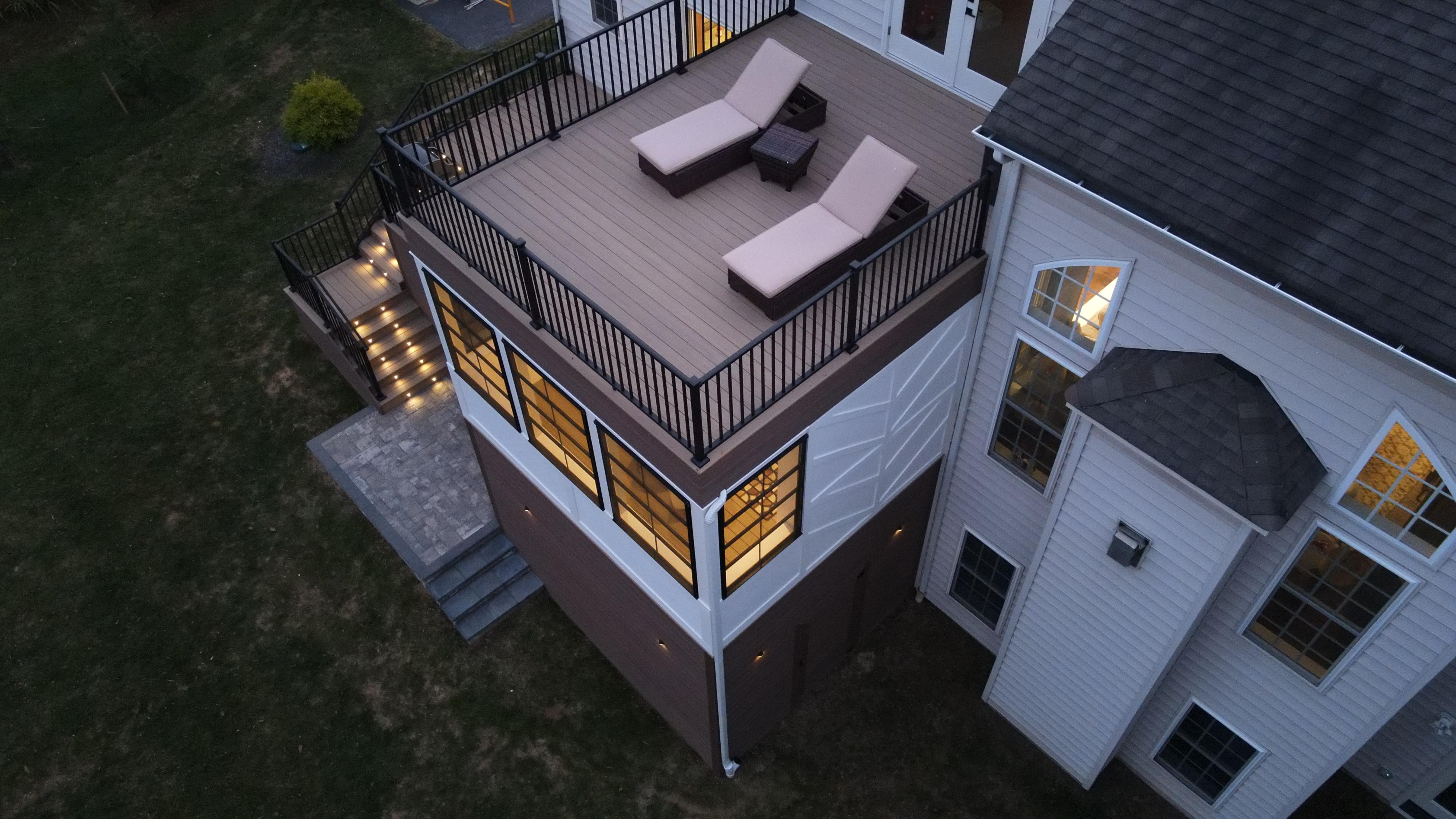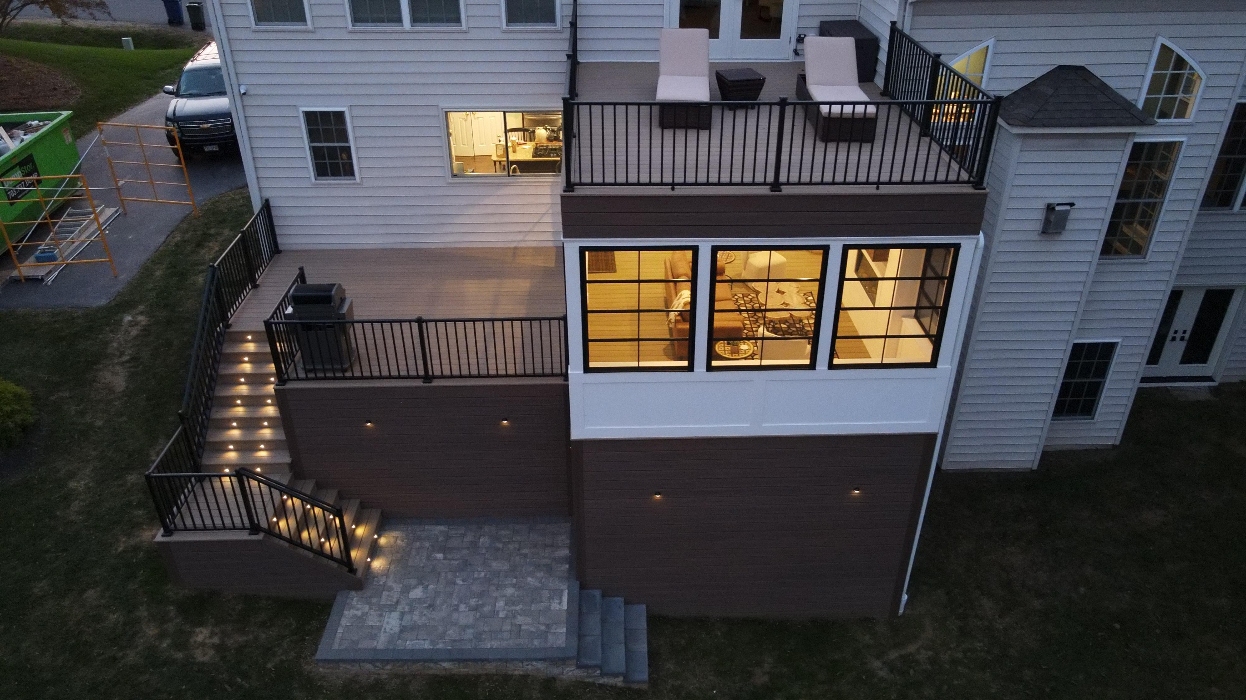 A fully enclosed lower level + elevated deck above—built into your home.